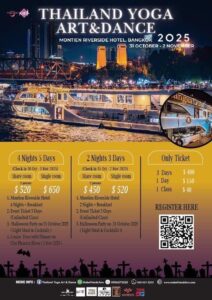 Thailand Yoga Art & Dance 2025 Mountien Riverside Hotel ; Bangkok 31 October – 2 November 2025 Poster Thailand Yoga Art & Dance 2025